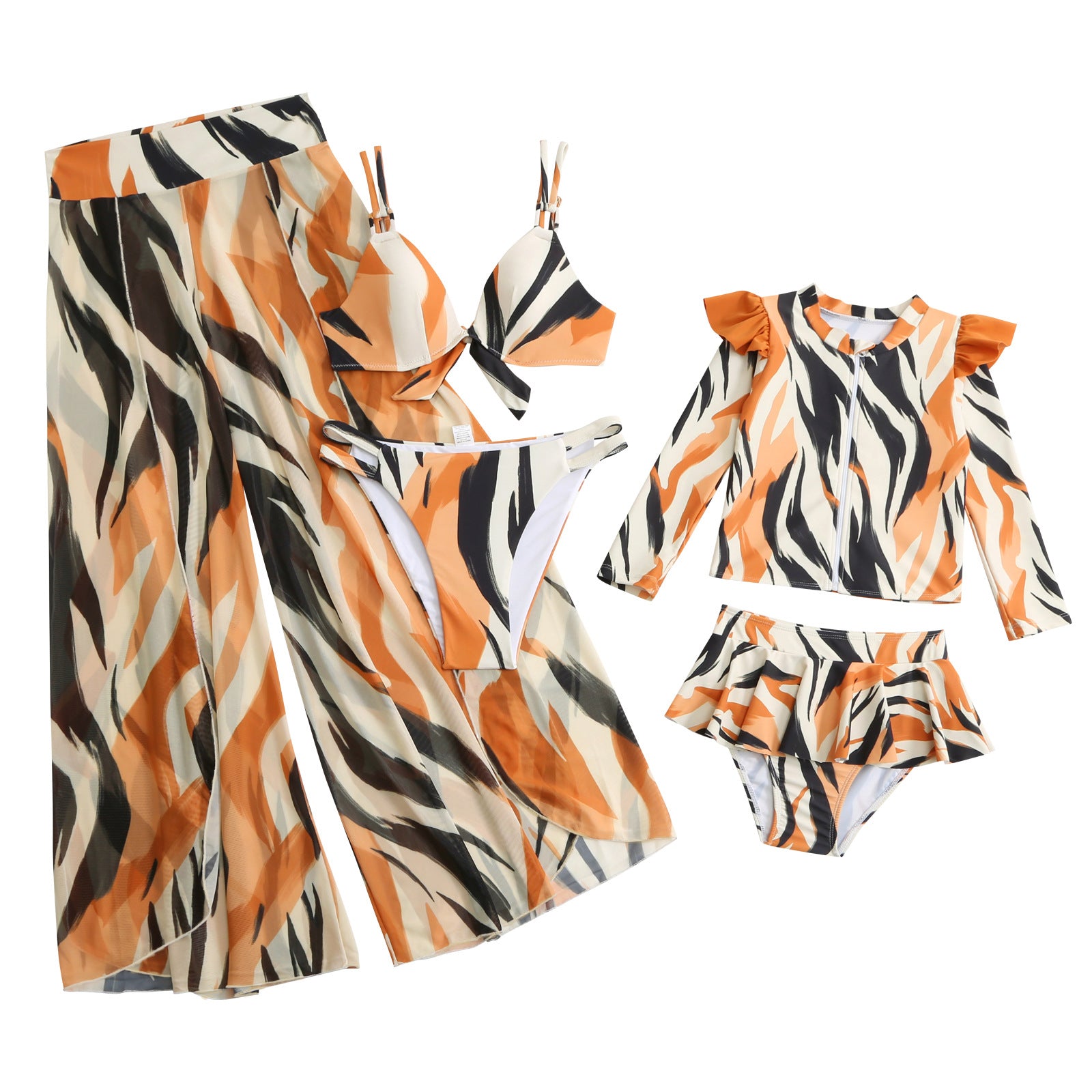 2024New Style Swimsuit Bikini Three-Piece Set Mesh Print Long Pants Swimwear swimwear