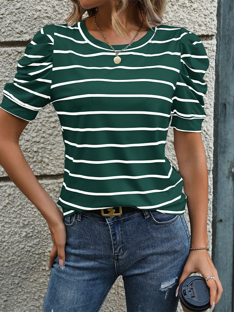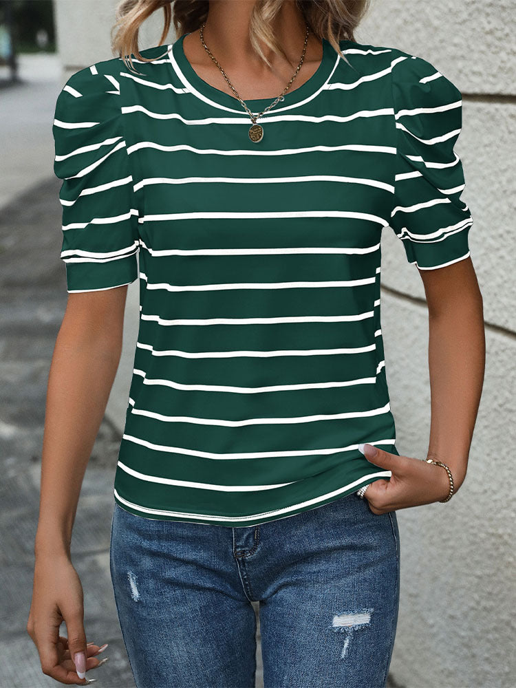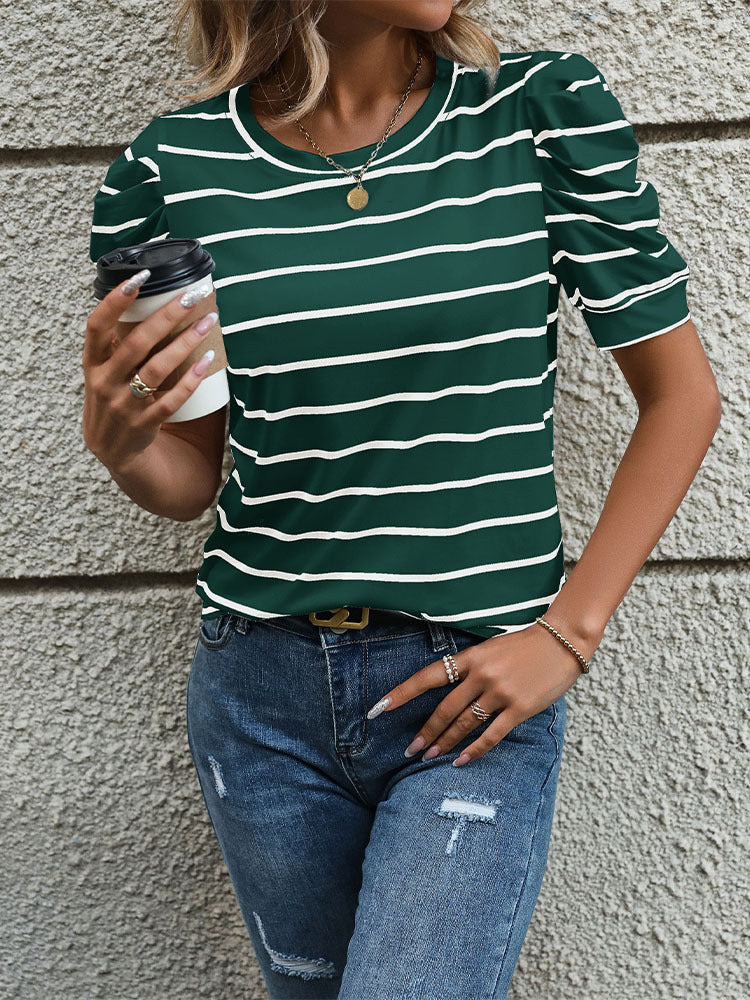 Elevate your casual wardrobe with our Blouse for Women! The comfortable and stylish design features puff short sleeves, a trendy boho print, and a flattering crew neck for a chic look. Perfect for the summer, this top is a must-have for any fashion-forward woman.