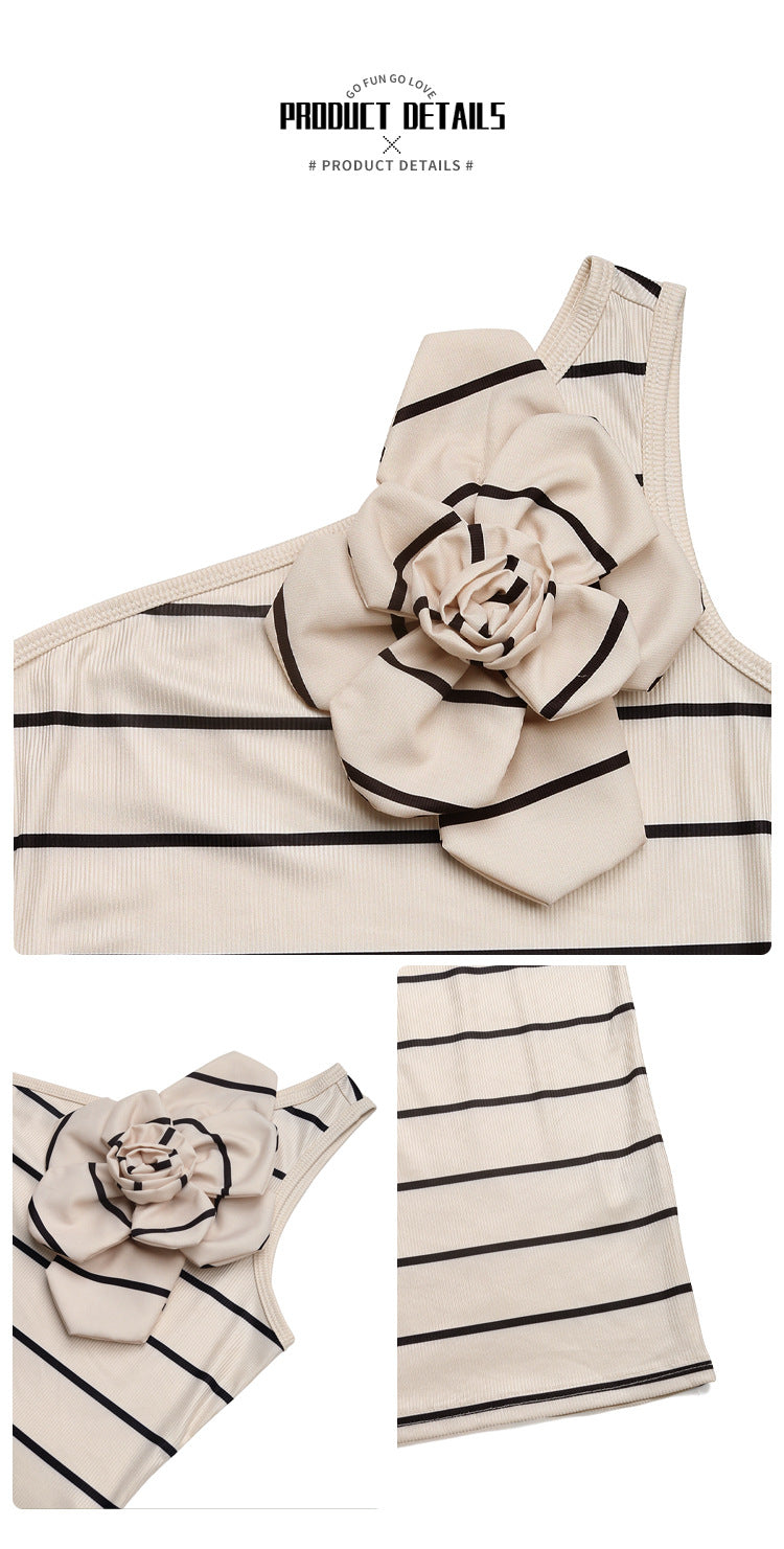 Elevate your style with our Floral Applique Bodycon Dress. Featuring a striking striped design and an off-shoulder neckline, this dress is perfect for any party or cocktail event. The exquisite 3D flower appliques add a touch of elegance and sophistication to the overall look, making you stand out in the crowd.