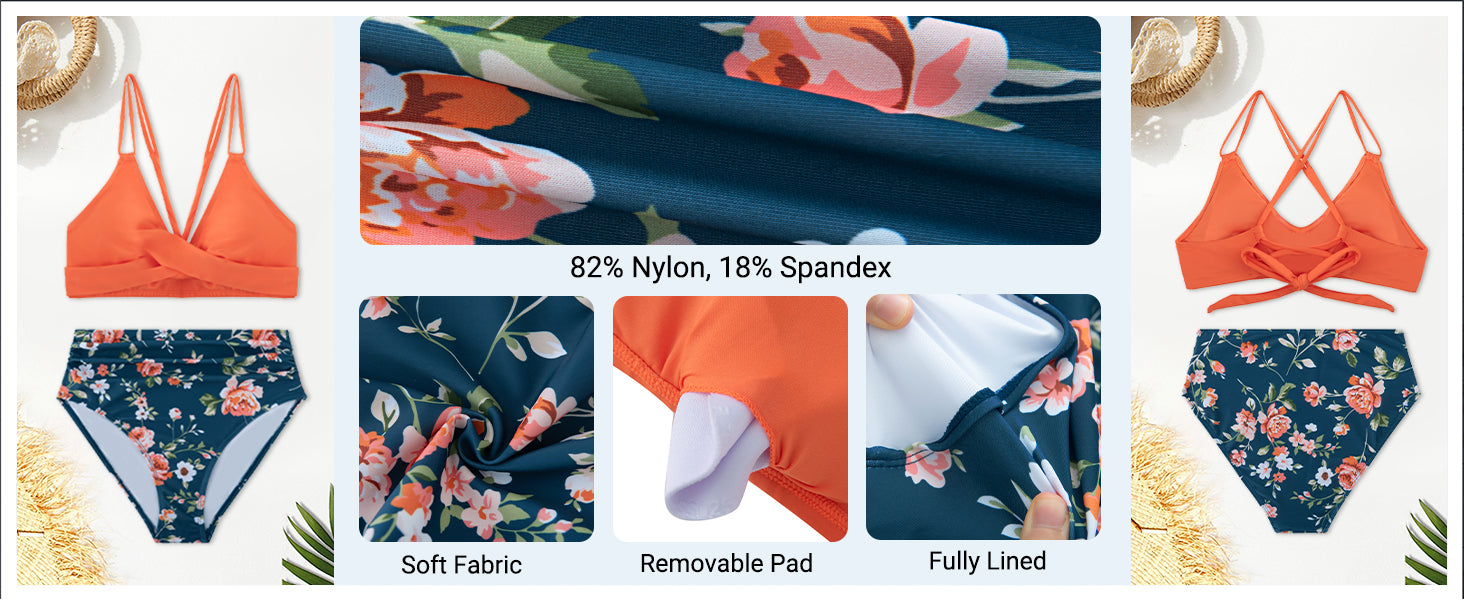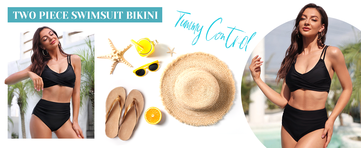 Women High Waisted Bikini Set Two Piece Swimsuits Push up Wrap Swim Suits Top Tummy Control Bathing Suit