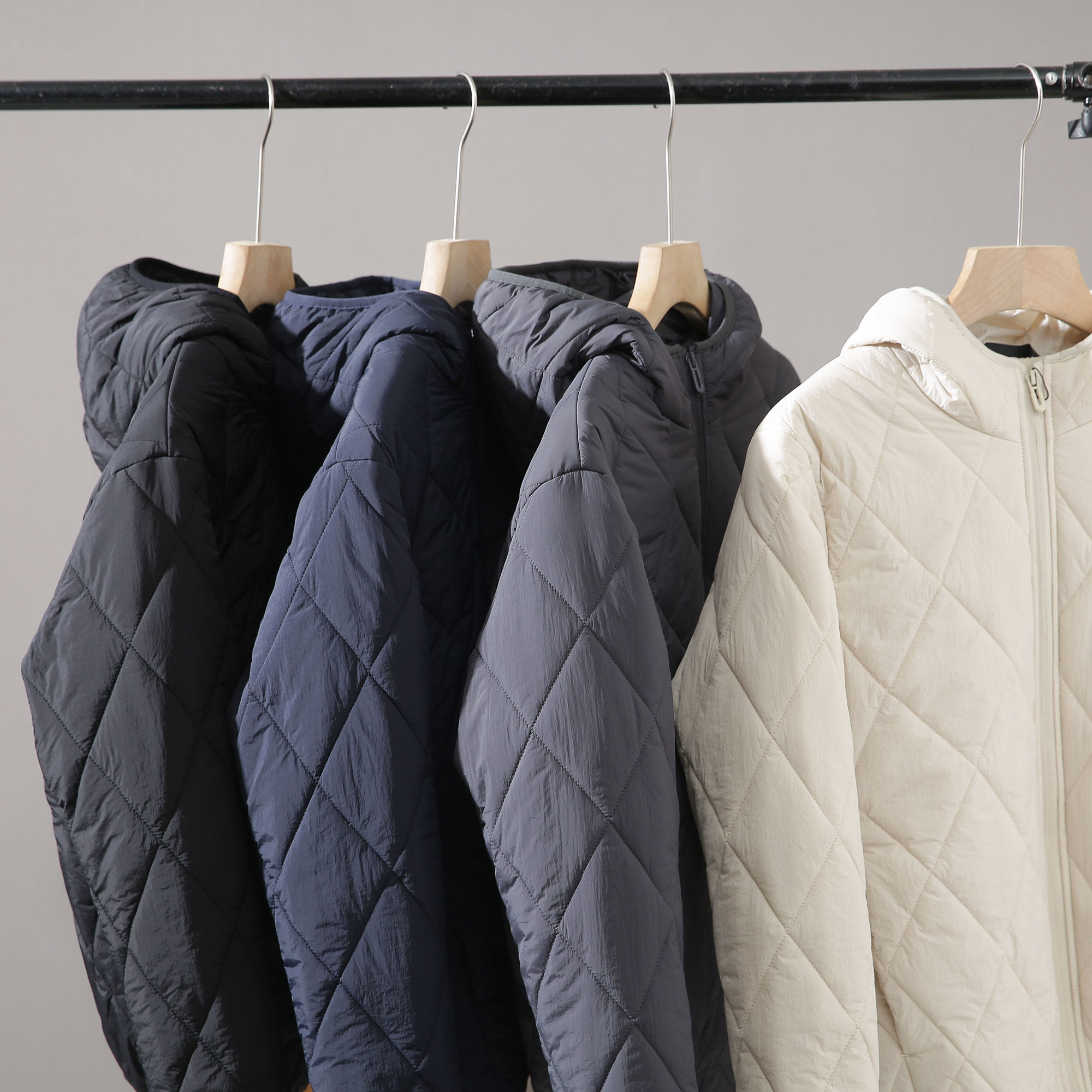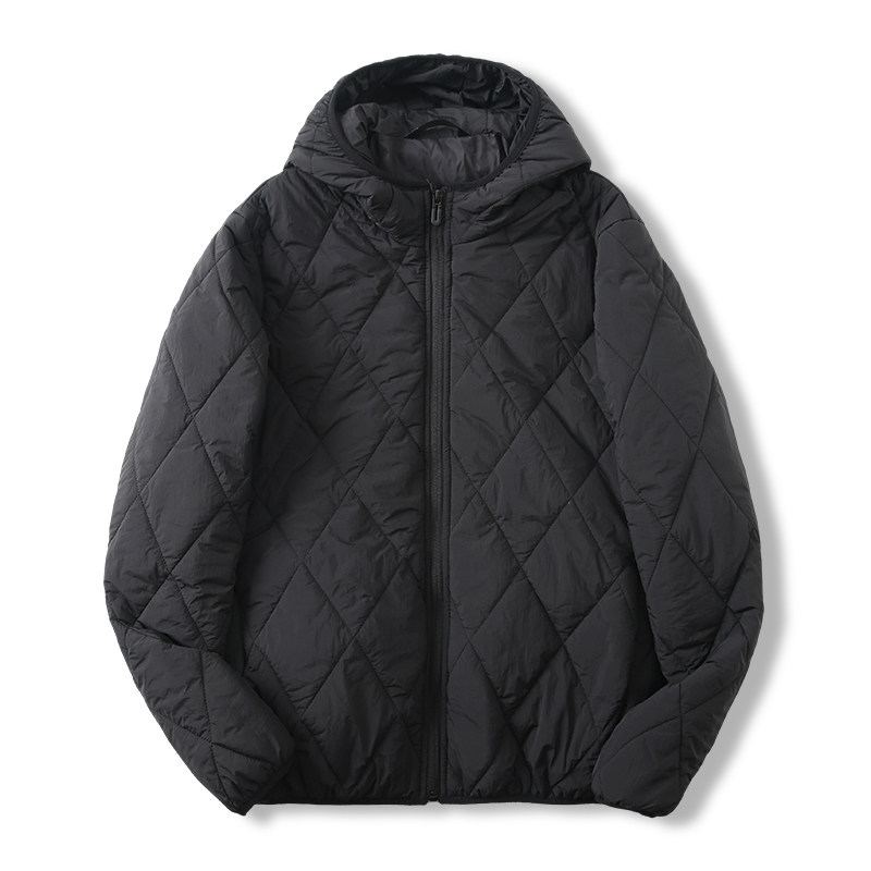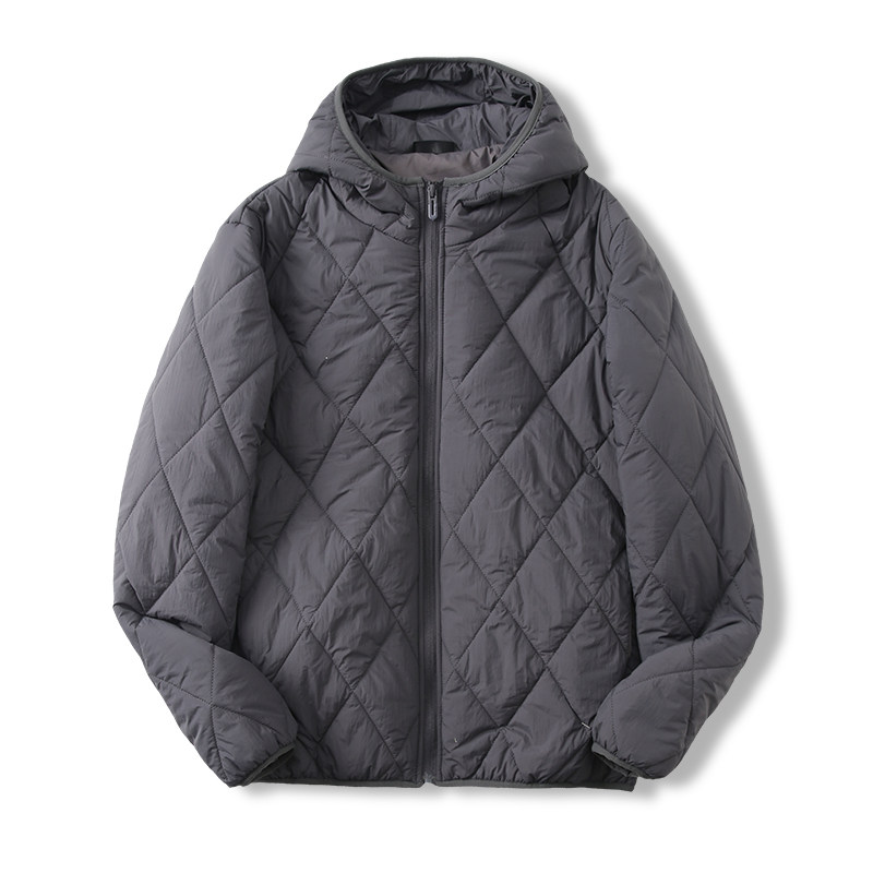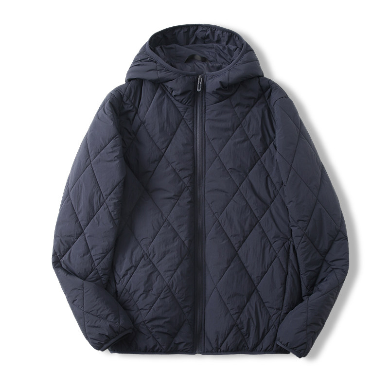 Light and warm mulberry silk men and women outdoor windproof hooded rhombus cotton clothes cotton jacket men and women