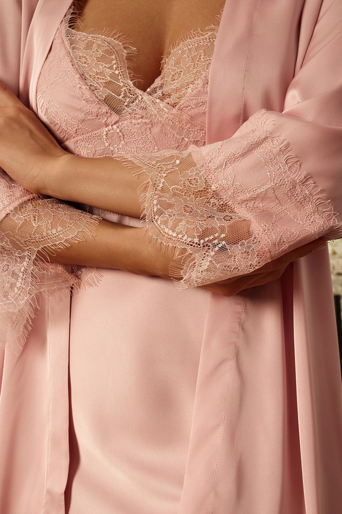 Découvrez nos pyjamas qui allient confort et élégance. Parfaits pour des nuits douces et stylées. L'ensemble comprend un peignoir et une nuisette.