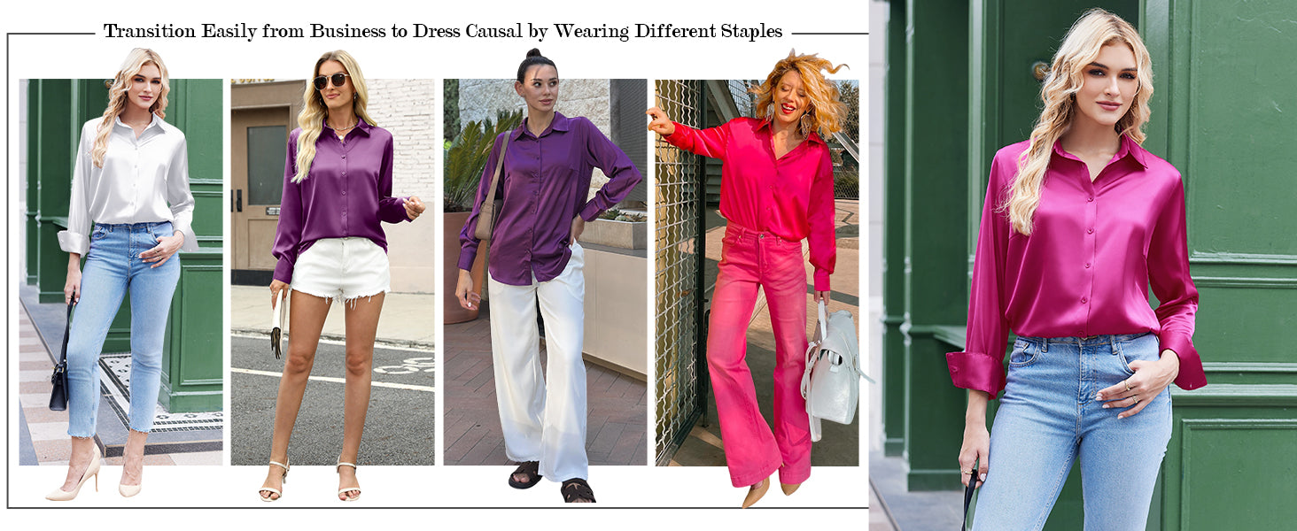 Satin Blouses for Women Silk Button Down Shirts Long Sleeve Business Casual Tops