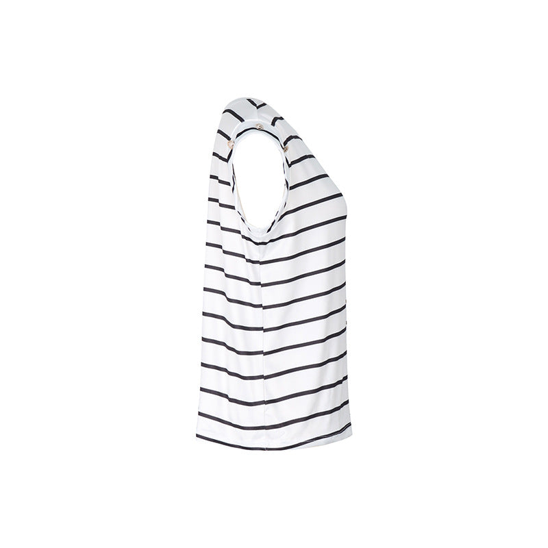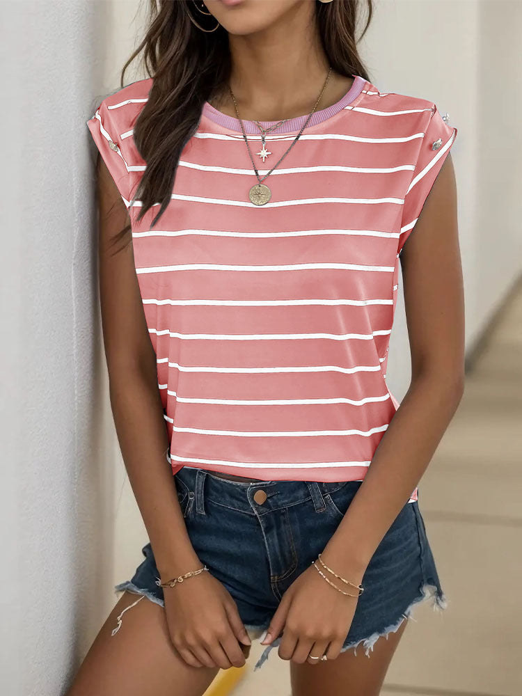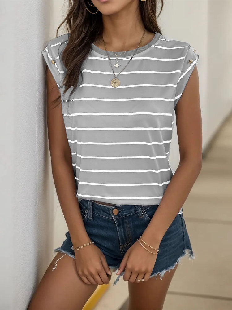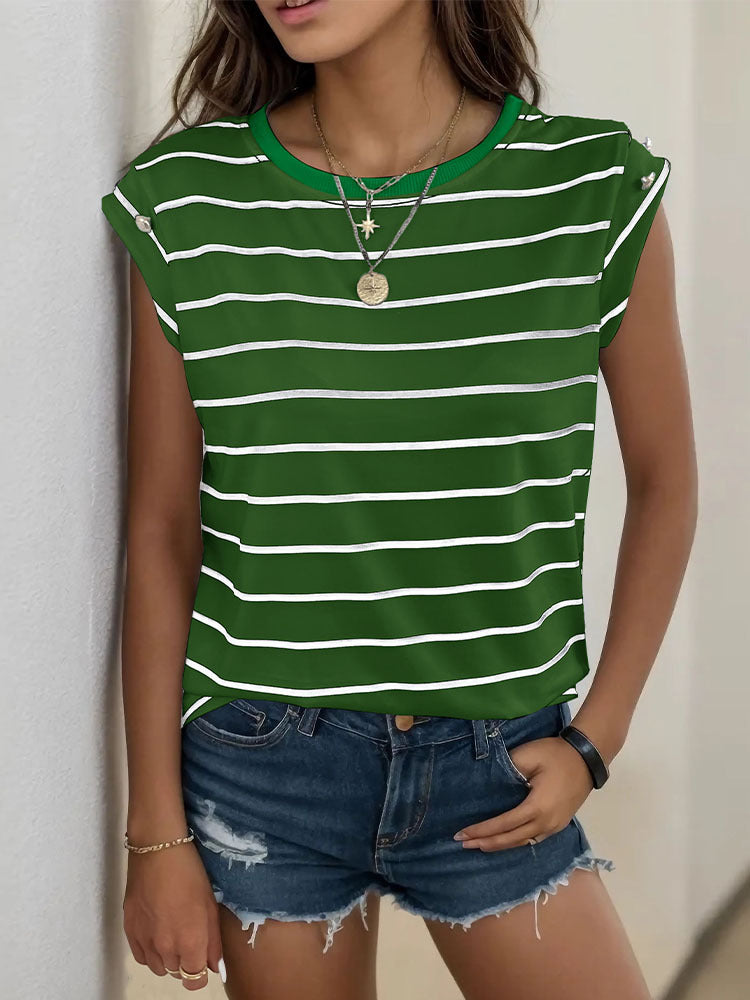 Summer Women's Sleeveless Classic Tops Horizontal Striped Round Neck Vest Loose Fit Cotton Fashion T-Shirt