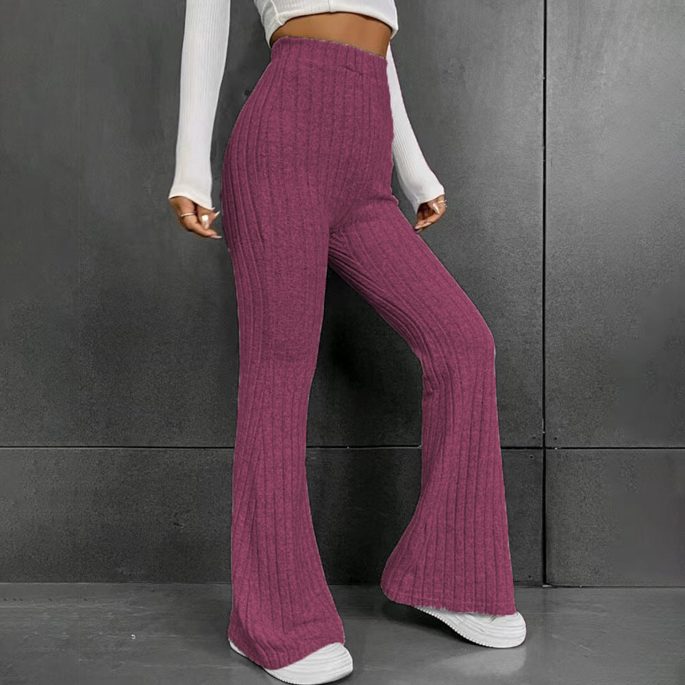Elevate your winter wardrobe with these meticulously crafted high-waisted flared pants. The premium knitted fabric offers both structure and flexibility, creating a slim fit through the hips that gracefully transitions to a flattering flare. The solid color design ensures versatile styling options while the high waistband provides exceptional comfort and a sleek silhouette. Perfect for both professional settings and casual outings during the colder months.