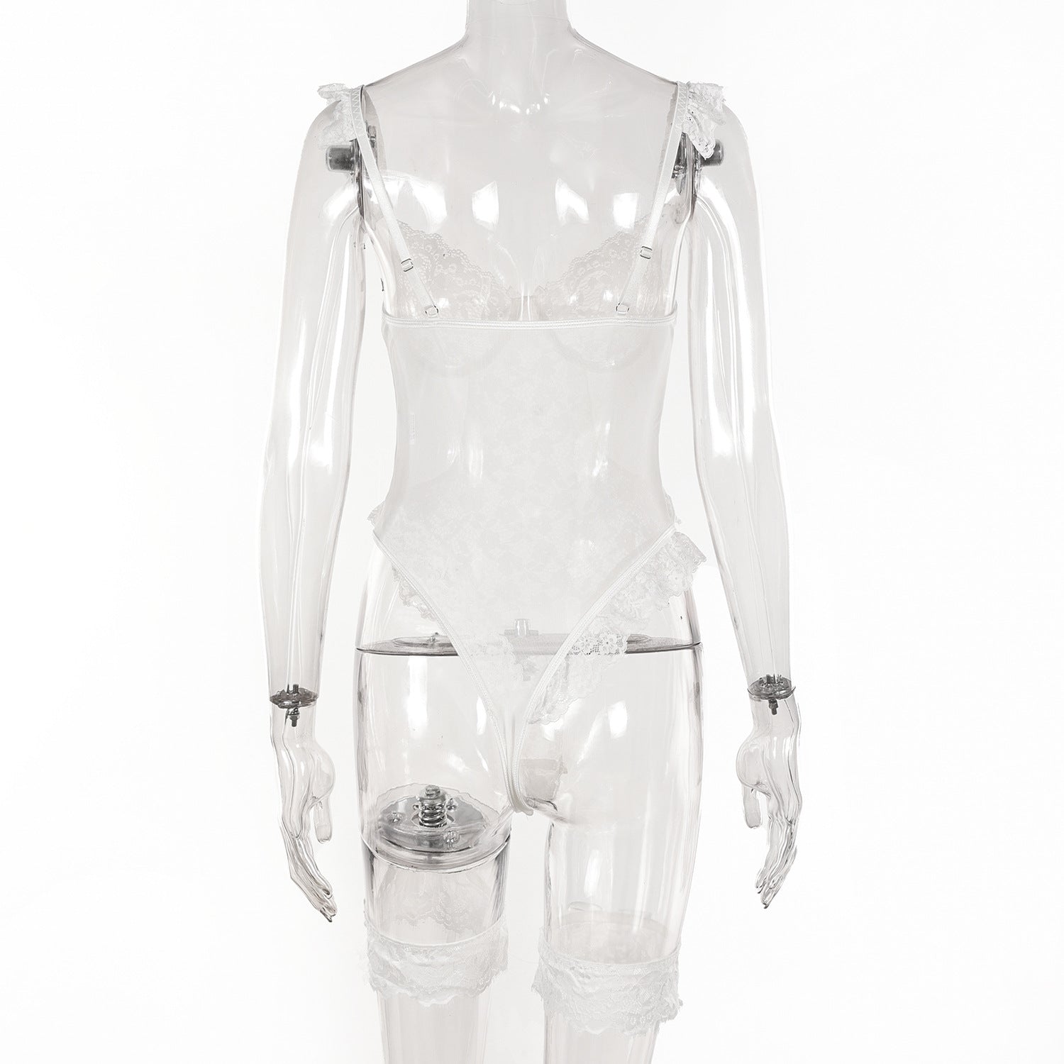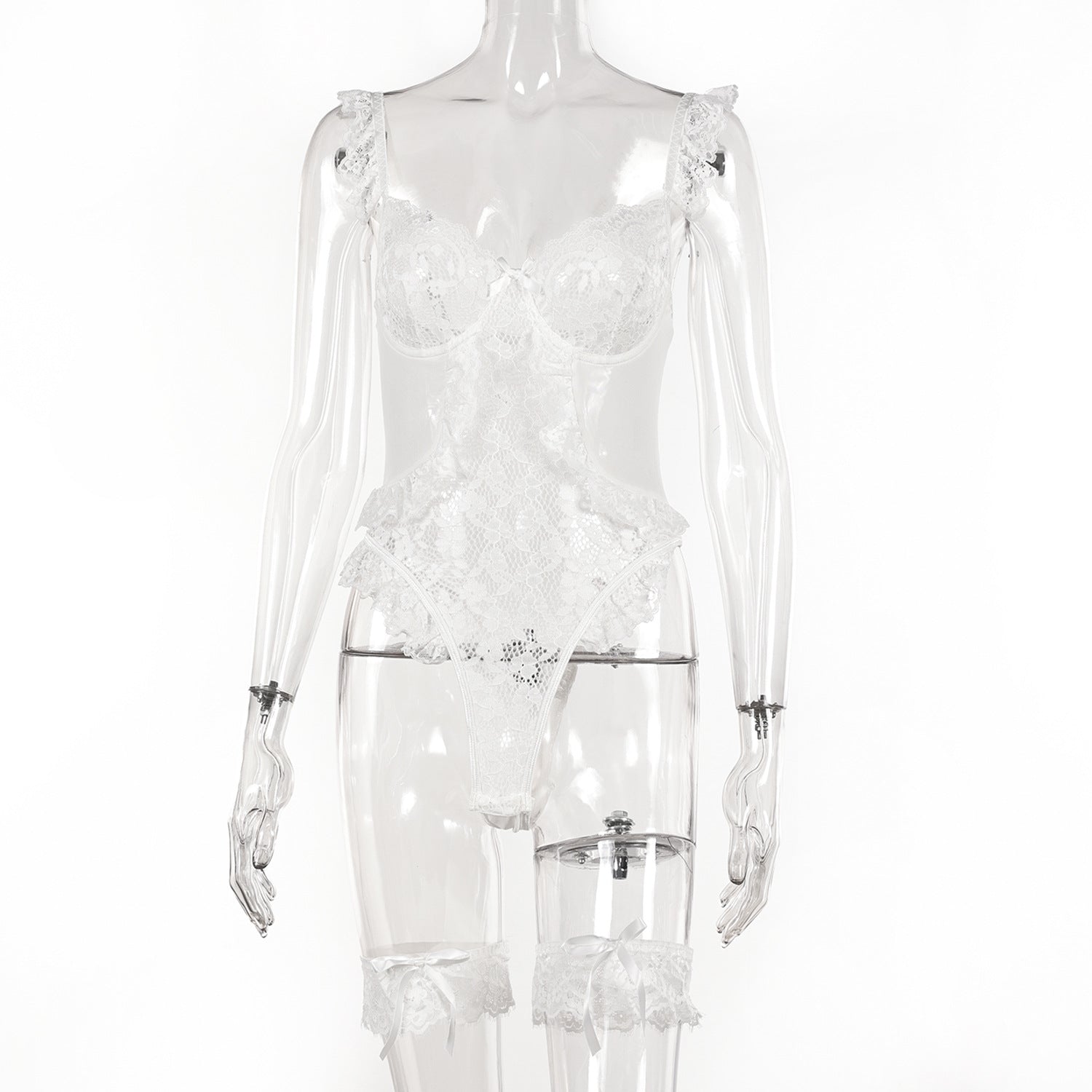 Elevate your intimate wardrobe with this expertly crafted floral lace teddy bodysuit. Designed for a perfect blend of allure and comfort, it features delicate ruffles and adjustable thigh bands that enhance your silhouette. The snap crotch ensures ease and practicality without compromising style. This one-piece babydoll offers both sensuality and sophistication, ideal for special occasions or elevated everyday wear.