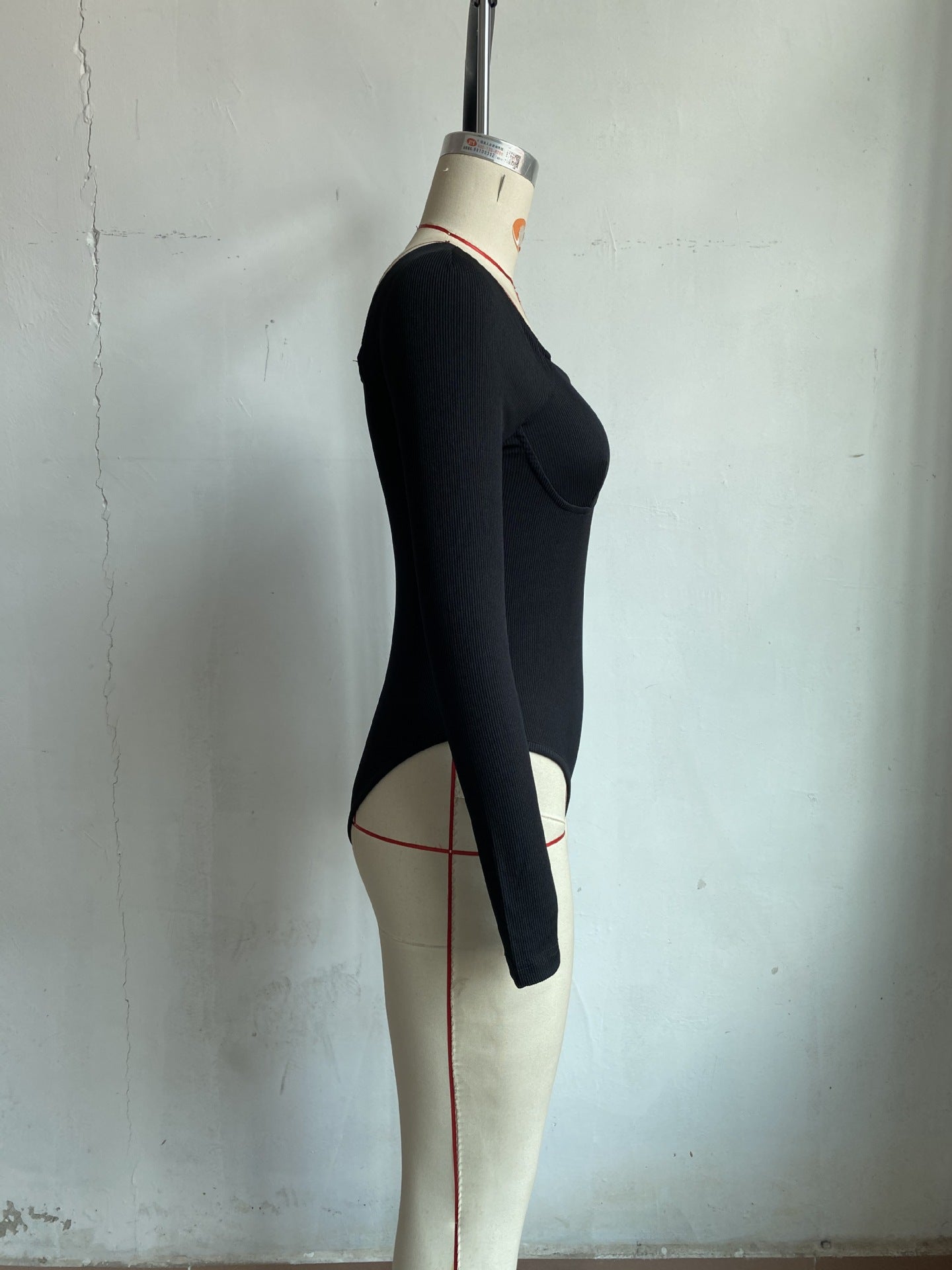 Women's Long Sleeve Bodysuit Shapewear Top Square Neck Bodysuit Halloween One Piece Basic Backless